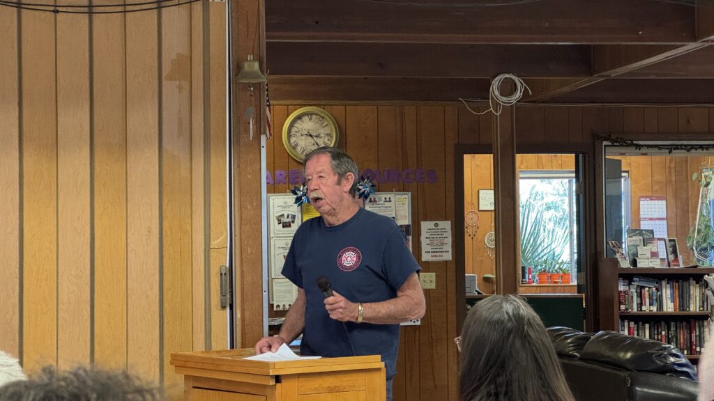 Larry Levy, a firefighter and longtime area resident, added a practical observation during the communications discussion: looking out the window of the community center, he noted, one can see an AT&T microwave relay station directly across the highway. AT&T’s cell antennas are positioned on Ibex Pass, behind the mountain from Tecopa, meaning the community receives no benefit from them. He suggested that the relay station across the highway might be a candidate for additional antenna placement.